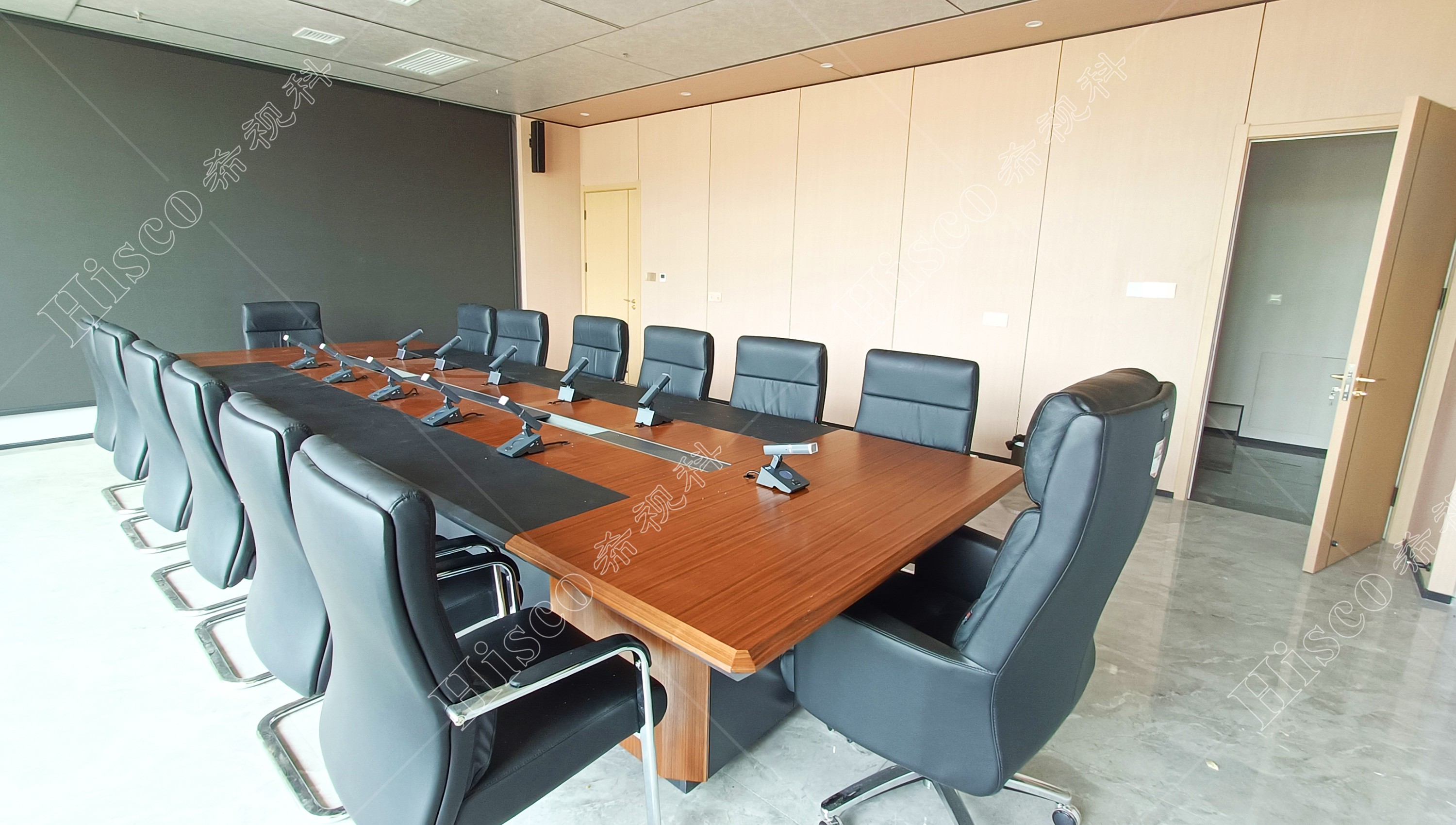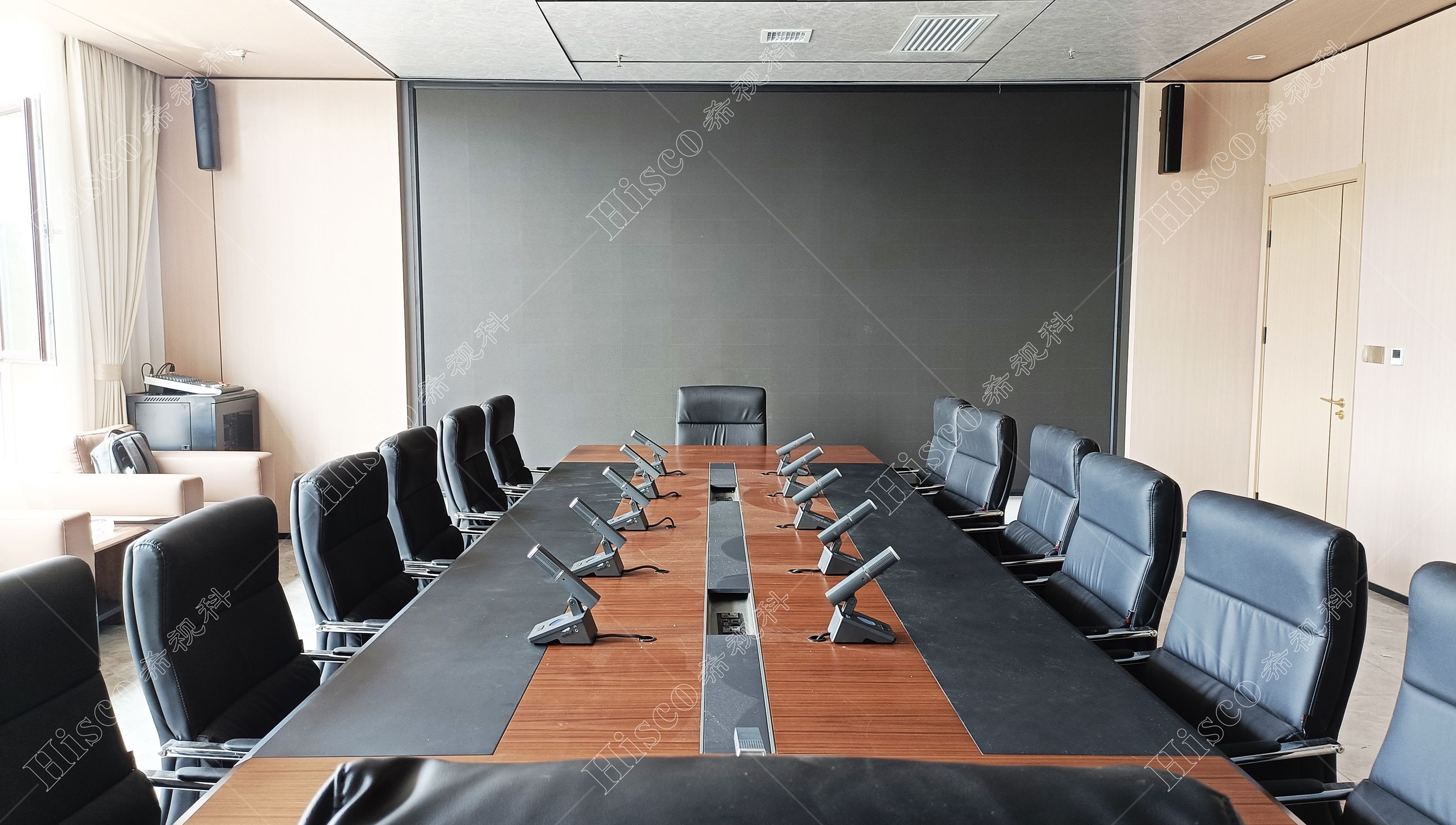 随着当今科技的飞速发展,老式的会议形式已无法适应现代化会议系统的要求。现代化的数字会议系统会议程序简单化、功能多样化,能够对会议实施控制、管理,包括声音传送稳定纯正,讨论清晰有序,使整个会议形式具有高效性。本次会议室设计采用数字会议系统,扩声系统、显示系统、集中控制系统、矩阵系统、无纸化升降等,实现会议室的多媒体会议功能,满足简洁流畅的会议过程、逼真传神的听觉效果、清晰舒适的视频显示、智能的摄像跟踪、媒体音视频信号源矩阵切换和中央集成控制等要求