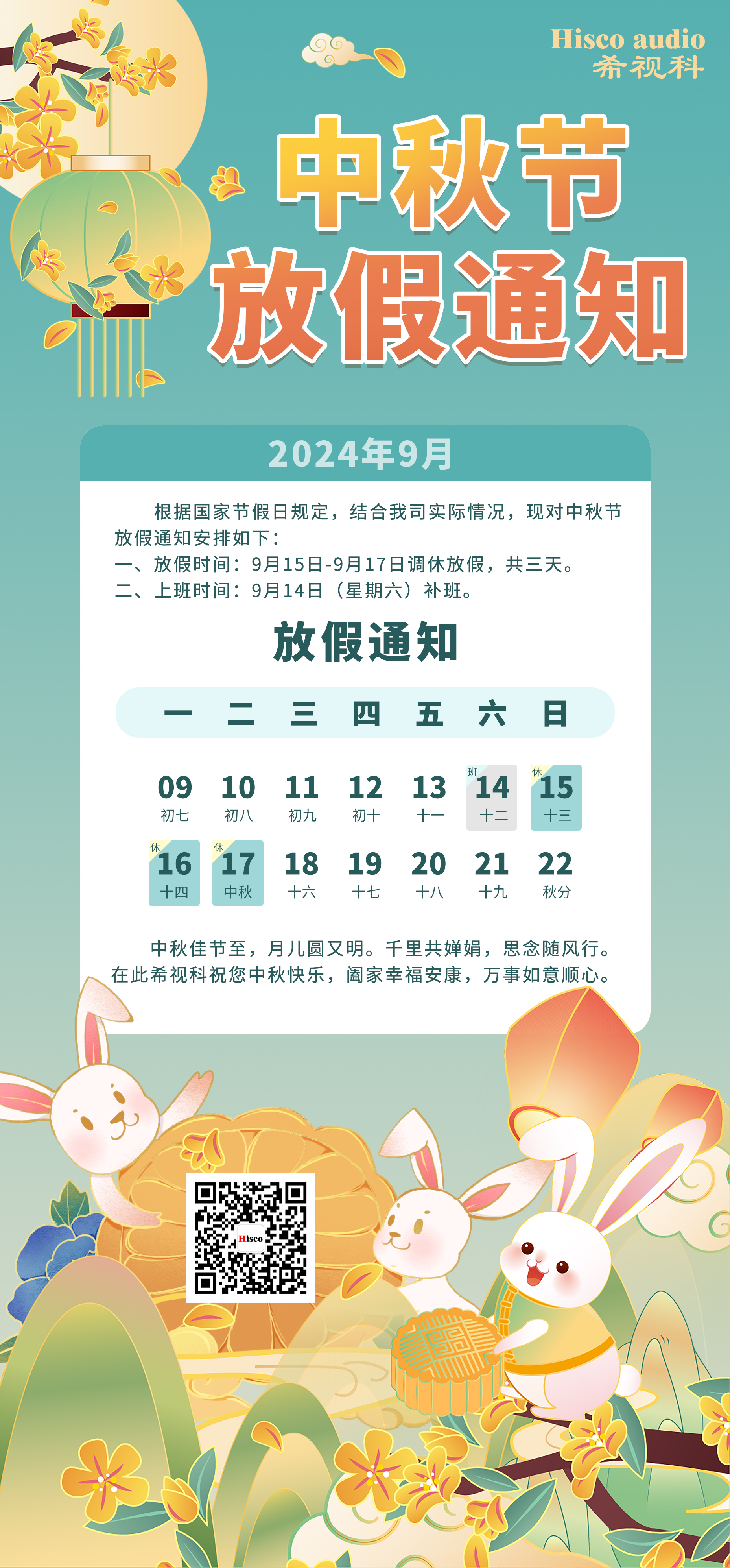 2024年中秋节放假通知